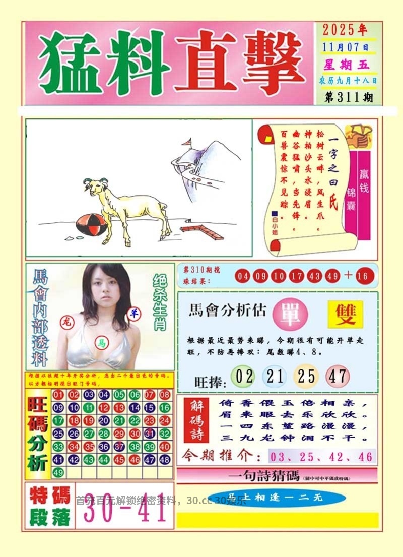 | 307期:天地+二肖〖地肖+猴牛〗开:狗20准 |